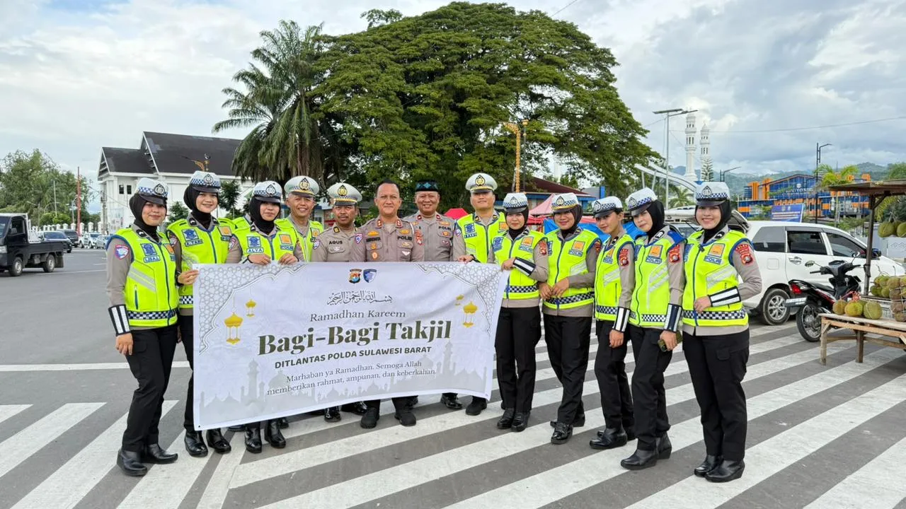 Polda Sulbar – Proclaimnews.id Dalam suasana penuh berkah bulan Ramadhan, Direktorat Lalu Lintas Polda Sulawesi Barat menggabungkan kepedulian sosial dengan kampanye keselamatan berlalu lintas melalui kegiatan pembagian takjil kepada para pengendara, Jumat (20/2/26).