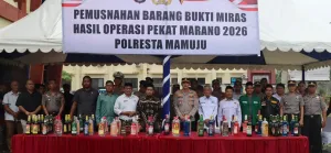 MAMUJU – PROCLAIMNEWS.ID Komitmen tegas menjaga keamanan dan ketertiban selama bulan suci Ramadan kembali dibuktikan Polresta Mamuju. Sebanyak 1.435 botol minuman keras (miras) beralkohol dan hampir 200 liter minuman tradisional jenis ballo atau cap tikus dimusnahkan dalam kegiatan yang digelar di halaman Mapolsek Mamuju, Selasa (24/2/2026). Ribuan barang bukti tersebut merupakan hasil Operasi Pekat Marano […]