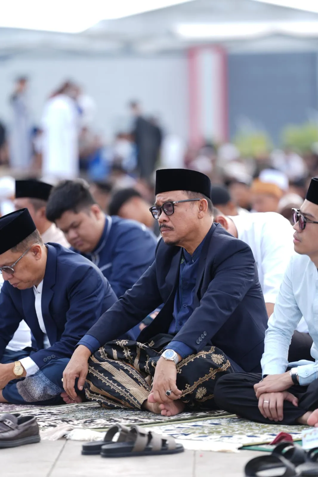 “Hari ini kita fitri, kita bergembira karena kita telah berjuang selama sebulan penuh dengan melaksanakan puasa Ramadan menahan hawa nafsu,” ujar Suhardi Duka.