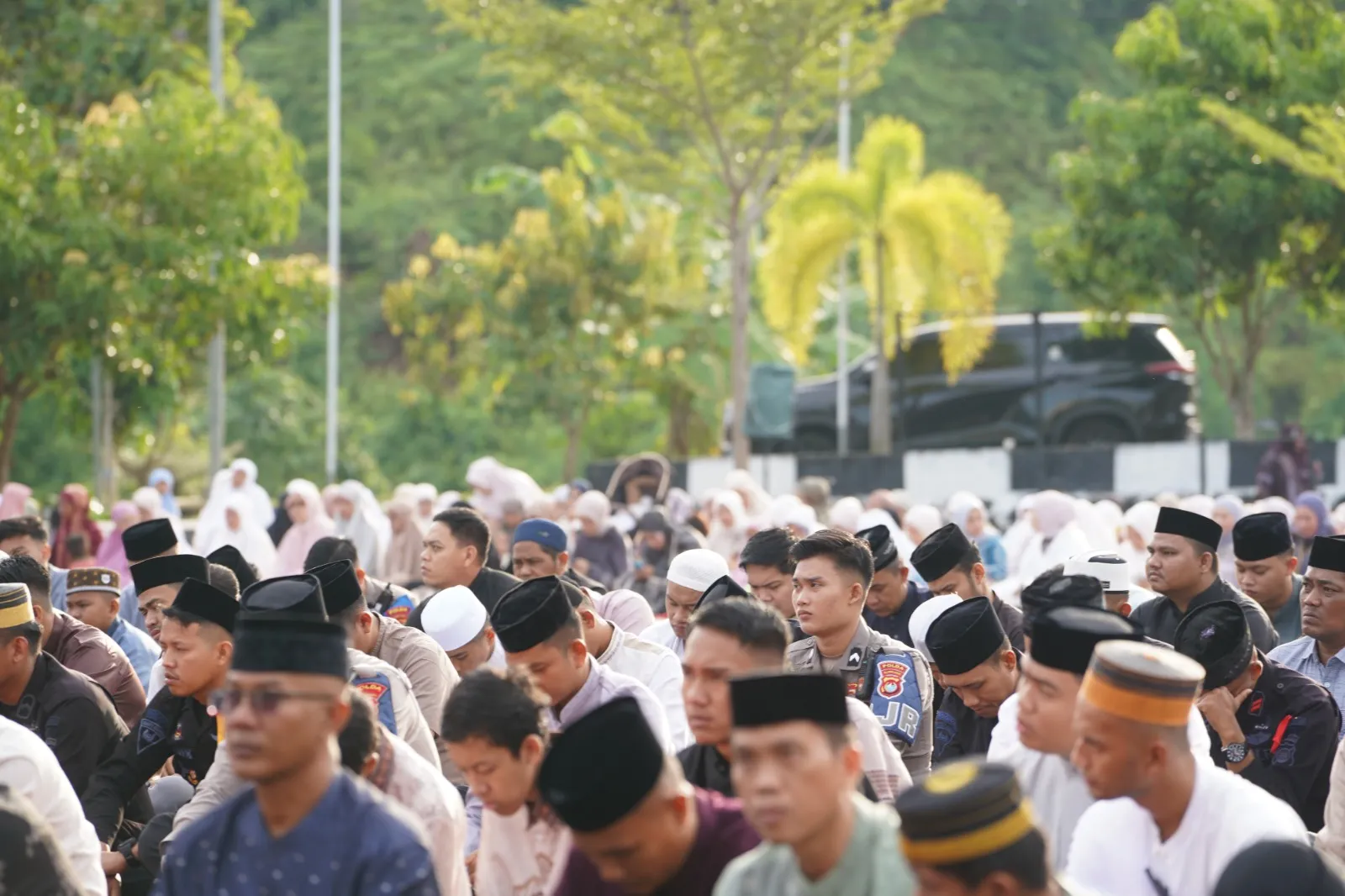 Pelaksanaan sholat Id yang berlangsung di lapangan Tribrata Polda Sulbar ini, terlihat dihadiri Kapolda Sulbar Irjen Pol Adi Deriyan Jayamarta bersama para pejabat utama, personel, Bhayangkari hingga masyarakat sekitar yang turut hadir dalam perayaan.