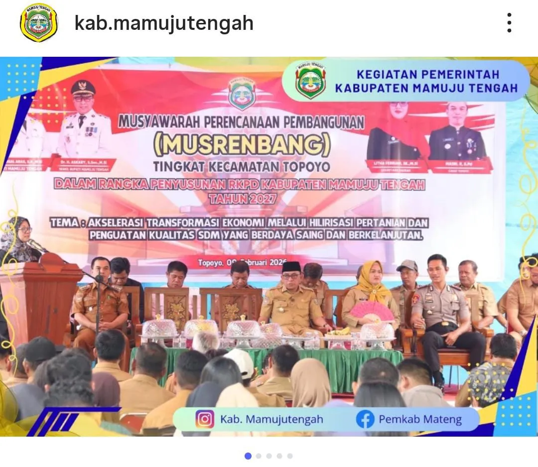 Pemerintah Kecamatan Topoyo menggelar Musyawarah Perencanaan Pembangunan (Musrenbang) tingkat kecamatan pada Senin (9/2) di Kantor Kecamatan Topoyo, Kabupaten Mamuju Tengah.