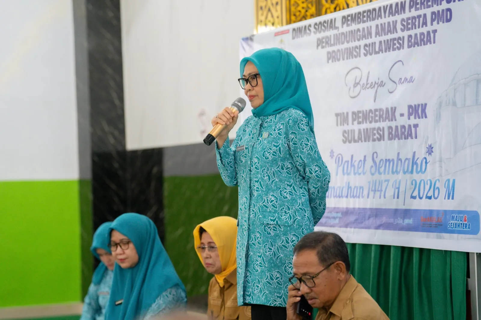 Mamuju —Proclaimnews.id Menjelang Hari Raya Idul Fitri, Ketua Tim Penggerak Pemberdayaan dan Kesejahteraan Keluarga (TP PKK) Provinsi Sulawesi Barat, Ny. Harsinah Suhardi, membagikan bantuan sembako secara gratis kepada sejumlah warga di Masjid Al Muhajirin, Jalan Tuna, Kelurahan Binanga, Kabupaten Mamuju. Senin 16 Maret 2026.