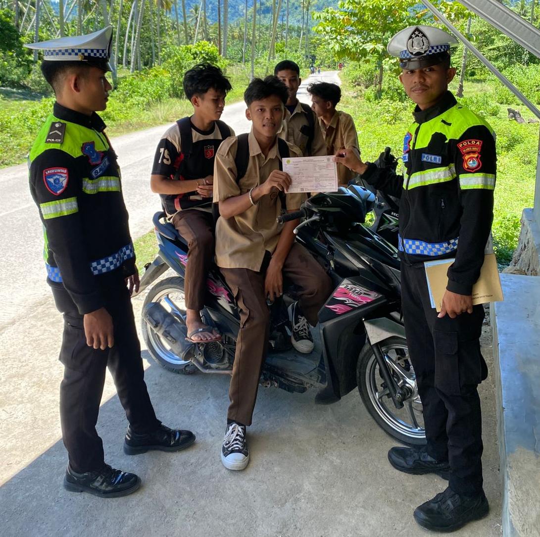 Kegiatan yang berlangsung di tengah arus lalu lintas siang hari ini tidak hanya fokus pada pengaturan kendaraan yang melintas, tetapi juga menjadi momentum bagi petugas untuk memberikan teguran simpatik dan edukasi langsung kepada para siswa yang menggunakan kendaraan roda dua.