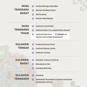 Mamuju –  Proclaimnews.id Provinsi Sulawesi Barat kembali menorehkan prestasi di tingkat nasional. Pada ajang Karisma Event Nusantara (KEN) 2026, tiga event unggulan berhasil masuk dalam Top 125 event terbaik, yakni Mandar Culture Festival dari Kabupaten Polewali Mandar, Manakarra Fair dari Kabupaten Mamuju, serta Sandeq Silumba dari Kabupaten Polewali Mandar. Keberhasilan tersebut menjadi bukti kuat bahwa […]
